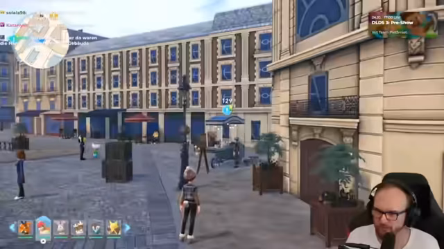 00:20:34Der Streamer kommt in Illumina City an und bemerkt, dass das Spiel nicht ruckelt, obwohl er lieber außerhalb der Stadt herumlaufen würde, da er kein 'Stadtmensch' ist. Er interagiert mit einigen NPCs und bewertet die Grafik der Charaktere als 'gestochen scharf' für Switch-Verhältnisse, kritisiert aber die Häuser im Hintergrund, die weniger detailreich wirken. Er wird direkt in die Story eingeführt, indem er als Tourist für das 'Hotel Z' werben soll. Eine Präsidentin der 'Quasar Corporation' hält eine Rede über das harmonische Zusammenleben von Menschen und Pokémon in Illumina City und die Entwicklung von 'Wildsektoren'. Plötzlich wird seine Reisetasche von einem Pam-Pam gestohlen, was zur ersten Hauptmission 'Die Reisetasche' führt. Er muss dem Pokémon hinterherjagen und bewertet die Grafik des Spiels auf einer Skala von 1 bis 10 mit einer 5,5, da es zwar das beste 3D-Pokémon-Spiel sei, aber es grafisch schönere Spiele gäbe. Er betont jedoch, dass die Grafik für ihn zweitrangig ist und das Spielerlebnis zählt.