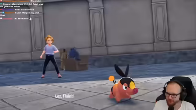 00:29:15Nachdem seine Reisetasche von einem Pam-Pam gestohlen wurde, stellt sich heraus, dass das Pokémon jemandem gehört. Er trifft auf Zita, eine Influencerin, die ihn in einen Kampf verwickelt. Um seine Tasche zurückzubekommen, muss er gegen sie antreten. Er darf sich einen Starter-Pokémon aussuchen und entscheidet sich für Floink, da er dieses Schweinchen noch nie in einem Pokémon-Spiel hatte. Er ist gespannt auf das Kampfsystem, das sich von den traditionellen Pokémon-Spielen unterscheidet und eher an ein Final Fantasy-Kampfsystem mit aktiven Leisten erinnert. Im Kampf gegen Zitas Pam-Pam muss er Attacken wählen, die sich aufladen. Er bemerkt, dass es sich anfühlt wie 'Button-Spam', da er die schnellsten Attacken hintereinander einsetzt. Obwohl er den Kampf verliert, erhält er Floink als Partner-Pokémon, was ihn sehr freut. Er lernt, dass die Legends-Spiele immer einen besonderen Kniff haben, und hier ist es das veränderte Kampfsystem.
