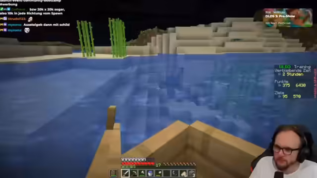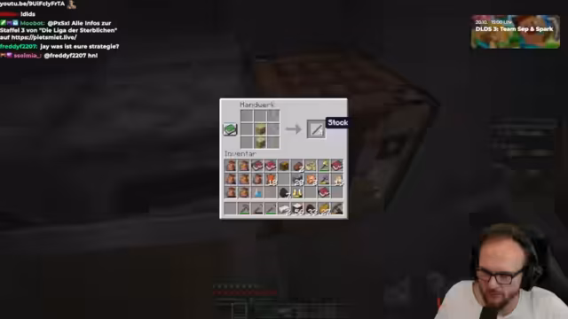 06:28:06Der Streamer plant seine nächsten Schritte im Spiel, wobei das Finden eines Dorfes als primäres Ziel genannt wird. Er muss Eisen farmen, um sich ein Eisenschwert zu craften, da sein Inventar unaufgeräumt ist und er nur noch wenig Eisen besitzt. Das Hauptziel ist es, nicht zu sterben und Punkte zu sammeln, obwohl ein konkreter 12-Stunden-Plan fehlt. Die Idee, DLDS (Dungeons, Loot, Diamonds, Survival) weiter zu üben, entstand aus einer Frage nach seiner Verfassung und der Erkenntnis, dass das Event am Sonntag stattfindet. Er möchte sich auf Aufgaben konzentrieren, die auch in Höhlen oder unter Tage erledigt werden können, und bittet den Chat um Hilfe bei der Identifizierung dieser Aufgaben. Die Überlegung, Diamanten zu sammeln, wird als sinnvoll erachtet, da es entsprechende Aufgaben gibt.
