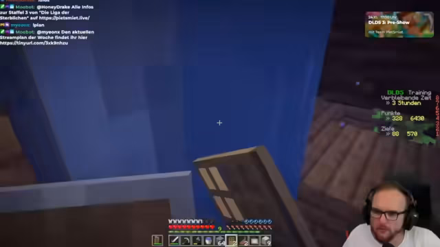 06:27:05Aufgrund einer Anfrage der Community wechselt der Streamer spontan von Battlefield zu Minecraft, um sich für DLDS zu üben. Der Fokus liegt auf dem Vorrücken in der Welt, dem Sammeln von Ressourcen wie Eisen, Diamanten und Wolle, und dem Erfüllen von Quests. Das Inventarmanagement wird als schmerzhaft und unübersichtlich beschrieben, und das Finden von Dörfern und das Abschlassen von Aufgaben wie dem Bienen- und Spinnen-Treffen priorisiert.