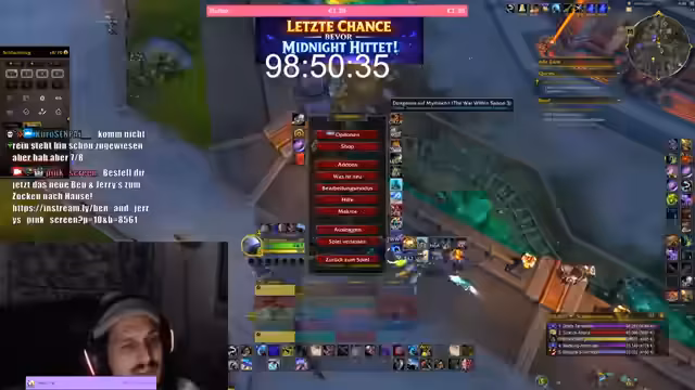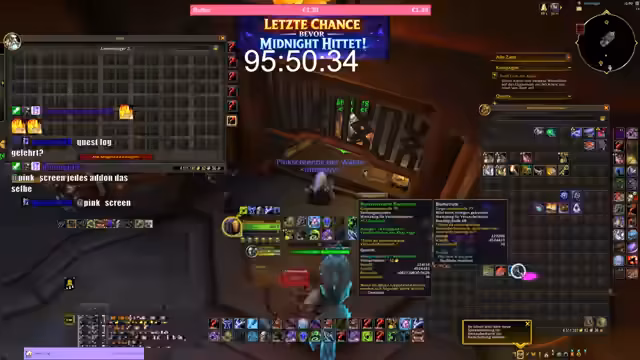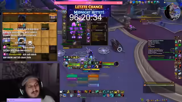 09:41:39Der Streamer erwähne die begrenzte Zeit von etwa 97 Stunden, um den spezifischen Mount zu erhalten. Es wird nochmal ein Run am angekündigt, um auch Spielern mit niedrigerem Level eine Chance zu geben. Voraussetzung ist, dass sie bis zum Ende des aktuellen Raids teilnehmen. Anschließend wechselt der Fokus zum Midnight Release. Der Streamer erläutert die Vorbereitung auf das neue Spiel, die Notwendigkeit, die Weltquests zu füllen, und gibt Hinweise zur Ausrüstungsanlage mit Verzauberungen und Sockeln für die ersten Dungeons.
