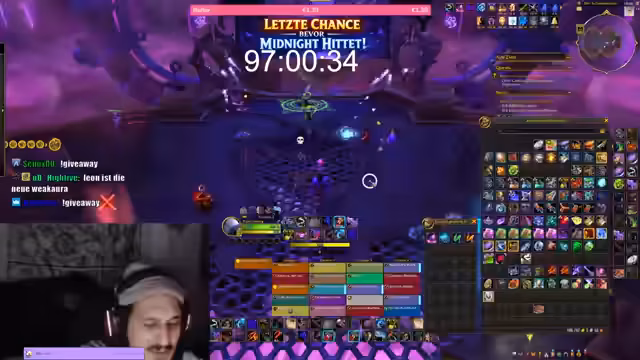 07:30:10Gegen Ende des Streams wurde ein Gewinnspiel angekündigt bei dem ein 'early access' zur Midnight Epic Edition verlost werde. Dies geschah um auch Zuschauer ohne das Spiel zu erreichen. Der Streamer betonte noch einmal die Dringlichkeit da die Mounts bald verschwinden würden. Er suchte aktiv nach Spielern mit spezifischem Ausrüstungslevel (ID) und forderte die Zuschauer auf 'maximal verzaubert, maximal gesockelt' zu sein um jeden Schadenspunkt auszunutzen.