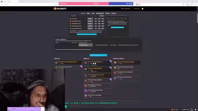 03:19:23Nach dem erfolgreichen Kill wird die zukünftige Ausrüstungsplanung für den Streamer besprochen. Die Turbo-Saison mit unbegrenzten Crests steht bevor. Es wird abgewogen, ob ein gecrafteter Hals oder der Loot-Bosskopf die bessere Wahl für die optimale Statverteilung ist. Die Analyse mithilfe eines Simulationstools zeigt, dass der Bosskopf, trotz ungünstiger Statverteilung, die bessere Option ist.