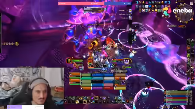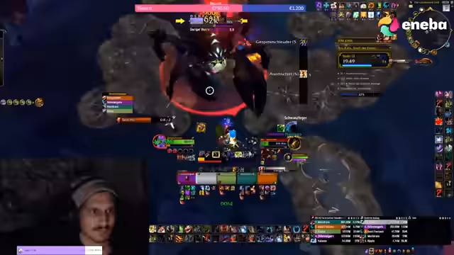 02:14:54In der finalen Phase des Bosskampfes stellt der Streamer die dringende Notwendigkeit klar, dass alle Spieler alle defensiven CDs, Tränke und Heilpotionen einsetzen müssen, um das Schild zu überleben und den Kampf zu beenden. Die Anweisungen sind präzise: Gruppen für die Pfützen, klare Positionierung für die Tankbomben und der Sprung durch die Wand werden wiederholt. Trotz eines falschen Calls seitens des Streamers, der die Springer in die falsche Richtung lenkte, gelingt es der Gruppe, den Boss bei 6% zu besiegen, nachdem sie den Enrage-Timer überlebt hat.
