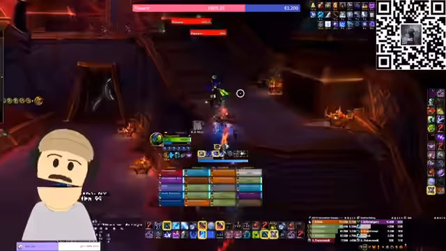 01:38:27Die Portal-Mechanik erweist sich als Herausforderung, da Spieler mit einem Debuff durch ein Portal müssen, um auf der anderen Seite dispelt zu werden, was das Wipen der Gruppe verhindert. Es wird überlegt, eine Weak-Aura zu verwenden, die anzeigt, wer den Debuff hat und durch das Portal muss. Felix und der Streamer werden als designierte Spieler für diese Aufgabe ausgewählt. Es wird betont, dass die Tanks nicht durch das Portal dürfen. Nach dem Schildbruch des Bosses müssen CCs für die Ads eingesetzt werden, da diese nicht in den Boss laufen dürfen. Der aktive Tank, der einen blauen Debuff erhält, muss sich von Boss entfernen und warten, bis die Ads kommen, um Binding Shots einzusetzen. Es wird festgestellt, dass die Ads das Hauptproblem sind und gekickt und schnell getötet werden müssen, insbesondere von den Ranges. Es wird eine Strategie besprochen, bei der das Schild gebrochen wird und dann alle auf die Ads gehen.