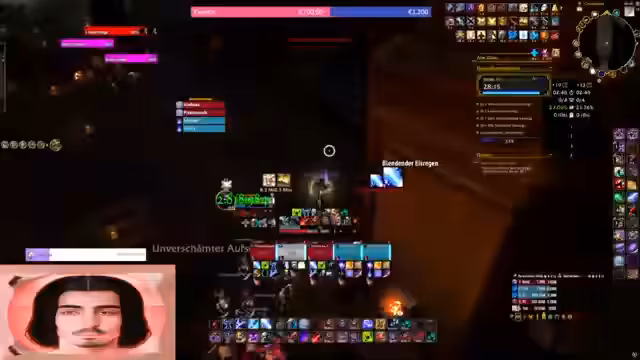 00:31:42Bei einem besonders kritischen Bosskampf läuft der Heiler ohne Mana, was zu einem zwingenden Defi führt. Der Streamer bemängelt, dass sich der Kampf sehr langsam angefühlt hat und ein fliegender Start der Hexer die Taktik störte. Nach dem ersten Boss wurde ein falsches Timing beim Chainen festgestellt, wodurch宝贵 Zeit verloren ging und die Route verpasst wurde.