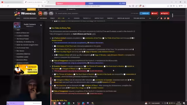 00:38:12Der Streamer spricht über die Herausforderungen bei den Meta-Erfolgen, insbesondere bei der Suche nach bestimmten Mounts. Er erwähnt speziell den Erfolg 'Mechakon' in Mechagon, bei dem man auf seltene Weltquests warten muss, die sehr selten erscheinen. Er beschreibt die verschiedenen Erfolge, die man noch abschließen muss, wie 'Schrottplatzlehrling' und 'Haldenkönig', die aufwendig sind.
