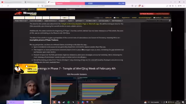 01:52:45Der Streamer zeigt die aktuellen Tank-Rankings in World of Warcraft und erwähnt spezifische Talente wie 'Ursul's Warning', Magieschaden um bis zu 10% zu reduzieren. Er spricht über die Stärken und Schwächen verschiedener Tank-Klassen, insbesondere des Wächter-Druiden, der Probleme mit Magieschaden hat. Er erwähnt auch die symbiotische Beziehung mit Verbündeten wie Eulen, die das Heilen verbessern.