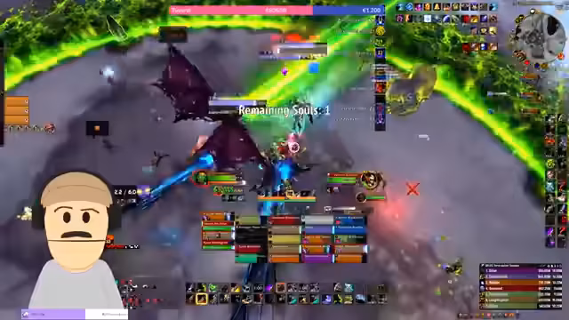 05:56:09Auf dem mythischen Schwierigkeitsgrad ändern sich die Mechaniken erheblich: Kugeln, die vom Boss kommen, sind schneller und one-shotten Spieler, wenn sie nicht ausgewichen werden. Auch die hinterlassenen Pfützen sind tödlich. Die zentrale Mythic-Mechanik sind schwarze Löcher und Ads. Spieler, die Ads bekommen, müssen sich hinter ein schwarzes Loch positionieren, damit die Ads hindurchlaufen. Dies stunnt die Ads und macht sie verwundbar. Wenn die Ads nicht durch das Loch laufen, werden sie CC-immun und führen zum Wipe. In der Intermission müssen Spieler an der Wand stehen, um Beams vom Raid fernzuhalten und Def-CDs bei etwa 4 Stacks zu nutzen.