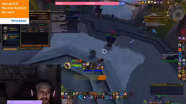 04:29:22Während des laufenden Raids fordert der Streamer die Spieler mehrfach auf, sich zu sammeln und Defensives einzusetzen, um den hohen Schaden der Bossfähigkeiten zu überleben. Es kommt zu kritischen Kommentaren über die Leistung einiger Spieler, die als 'erste Affen' oder 'Geier' bezeichnet werden, die offensichtlich nicht mitgearbeitet haben. Besonders der Mangel an Crowd Control gegen Adds und fehlerhafte Taunts der Tanks werden gerügt, was zu Wipes und Unmut im Chat führt.