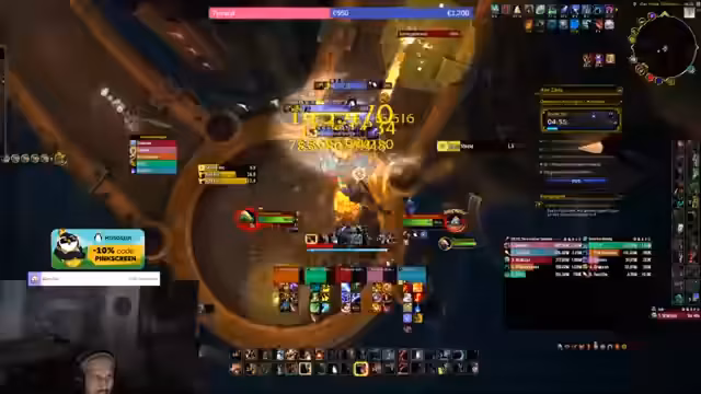 02:52:26Am Ende des Dungeons, im 'Laboratorium', wird es schwierig. Der Streamer entscheidet sich, eine Risiko-Route mit zwei starken 'Kraftprotze'-Mobs zu nutzen, was auf einem Plus 13 als bedingt angesehen wird. Es kommt zu einem komplexen Pull mit mehreren Adds. Während der Kampf an sich gut läuft, wird der Streamer durch einen unvorhergesehenen 'Vortex'-Affix überrascht, ihn aus dem Kampf wirft und ihn letztendlich tötet. Dennoch bleibt der Rest der Gruppe am Leben und der Sieg gelingt trotzdem.