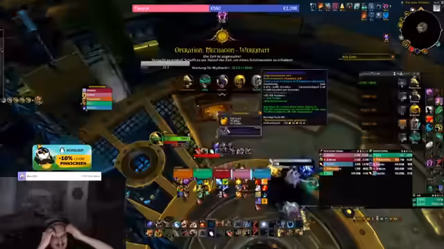 02:11:02Der Stream beginnt den Bosskampf im Dungeon 'Gruben von Neltharus' mit dem Ziel, den Plus 13 Schlüssel zu meistern. Es wird ein spezifischer Pull mit einem 'Groove Detonation'-Mechanismus geplant, der entweder abgelenkt oder gespült werden kann. Die Gruppe plant, den Raum zu teilen und Mobs strategisch zu pullen. Es gibt einige Diskussionen über die Rotation und die notwendigen defensiven Fähigkeiten, um den Boss erfolgreich zu besiegen und alle Spieler am Leben zu halten.