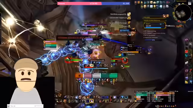 00:06:11Der Stream beginnt mit Begrüßungen und einem Überblick über die aktuelle Spielsituation. Es geht um das Vorhaben, den Level 11er-Charakter hochzuspielen, nachdem zuvor ein Stufe 11er versehentlich zu einem 10er wurde und dabei 23 Todesfälle verursachten, hauptsächlich aufgrund von häufigen Tank-Untergängen. Der Streamer wechselt die Klasse zu einem Windwalker, um in der Mythischen Schlacht +10 (M10) zu starten, und es wird geplant, den Dämonenjäger Raffi mitzunehmen. Es kommt zu technischen Unklarheiten bezüglich des Schlüsselverkaufs und der Tränke.