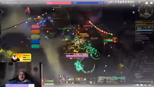 00:19:52Es wird detailliert auf die Mechaniken und den Ablauf des Events eingegangen. Die Questreihe des Events soll rund 70 Marken pro Charakter bringen, was als sehr effizient bewertet wird. Bei einem Raid werden erstmals die Drops und das Loot-Table des neuen Megadungeons "Operation Floodgate" besprochen, inklusive neuer Trinkets und Waffentypen. Das Gespräch verschärft sich beim ersten Boss des Dungeons, bei dem die Mechanik der "Lightning Sparks" im Fokus steht und hohe Todeszahlen verzeichnet werden.
