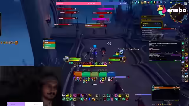 01:07:15Der Streamer sucht weiterhin nach einem Tank und einem Heiler für einen 11er Key, um seinen Mönch aufzuwerten. Er stellt fest, dass seine eigene Schlüsselsteinstufe zu hoch ist und fragt Kuni, ob er einen Key hat. Nachdem Micha und Chibi ihre Hilfe als Tank und Heiler zugesagt haben, ist das Team fast komplett. Es wird entschieden, einen 13er Key zu versuchen, um die Ausrüstung des Mönchs zu verbessern und gleichzeitig Übung für die Defensiv-Rotation zu sammeln. Der Streamer ist sich bewusst, dass er dabei oft sterben wird, sieht es aber als notwendige Übung an.