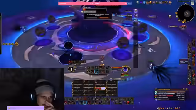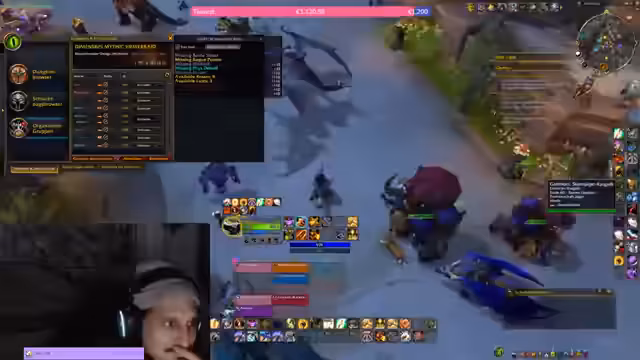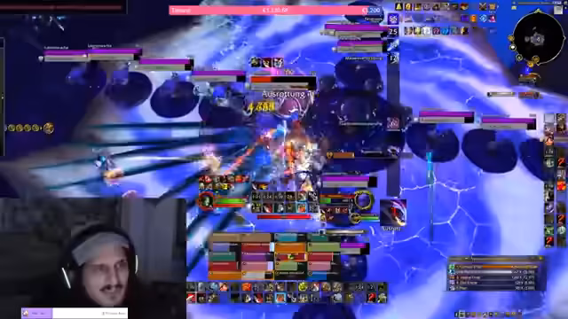 08:42:55Es kommt zu technischen Problemen, da ein Spieler namens "Bank" einen Disconnect erleidet. Die Koordination im Raid wird durch dieses Problem erschwert. Gleichzeitig werden die Anweisungen für den Kampf weitergegeben. Die Anwesenheit der Katze des Streamers, die einen unangenehmen Geruch verbreitet, wird als humorvolles Ablenkungsmoment erwähnt.