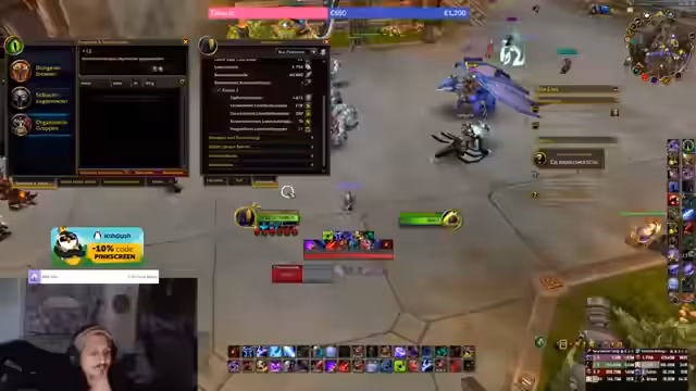 01:08:39Es wird überlegt, ob man in den Takretan-Abgrund oder in die Tiefenfestung gehen soll. Es wird über Drackys Vault gesprochen und was Schmeckt bekommen hat. Der Streamer hat ein Trinket vom Prio auf Mythic Track erhalten. Es wird diskutiert, was mit einem 11er Key gemacht werden soll, da Crests benötigt werden. Es wird beschlossen, eine 8er Instanz zu spielen. Es wird erklärt, dass es wichtig ist, die Eier kaputt zu machen, weil aus den Eiern Saurier kommen, die helfen. Es wird ein extra Action Button erwähnt, der alle 30 Sekunden gedrückt werden kann. Der 12er Key wurde nachträglich angerechnet, aber die Dunkelflammenspalte wurde abgezogen. Es wird überlegt, 3 bis 4 13er Keys zu teilen. Es wird überlegt, welche Affixe diese Woche aktiv sind und wie man das Inventar entrümpeln kann, indem man Gegenstände auf die Bank packt oder an die Kriegsmeutenbank verschickt.