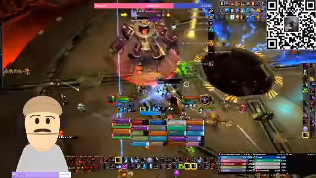 02:53:09In der Mitte des Streams wird der Übergang in die zweite Phase des Bosskampfes behandelt. Nach dem erfolgreichen Spielen der Bomben muss der Boss auf ca. 25% gebracht werden. Die 'Kanister'-Mechanik wird als der schwierigste Teil des Kampfes beschrieben. Spieler mit Immunities müssen in die Kanster springen, um Schaden zu absorbieren. Gleichzeitig werden andere Spieler aufgerufen, defensives Cooldowns zu nutzen oder aus der AOE-Reichweite des Bosses zu laufen, um einem großen AOE-Schaden zu entgehen.