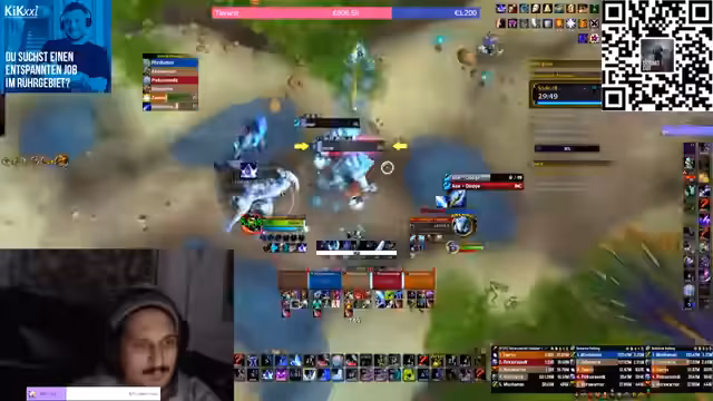 00:34:04Die Streamerin kündigt einen Viewerraid an und bittet um Unterstützung. Es werden spezifische Rollen gesucht, darunter zwei Tanks, Heiler und DDs (Damage Dealers). Sie erklärt, dass der Raid die ersten beiden Bosse auf dem mythischen Schwierigkeitsgrad bestreiten wird und gibt Einsteigern eine Chance, indem sie alle Mechaniken in deutscher Sprache erklärt. Für den Beitrag ist ein vorausgegangenes Verzaubern und Sockeln der Ausrüstung erforderlich.