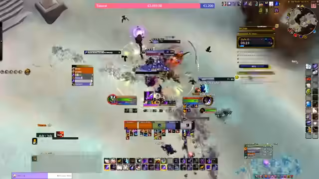 00:00:02Der Stream beginnt mit einem eher unorganisierten Start bei einem Schlachtzug namens Priesterchen und einem Schattenjäger. Nach einem langsamen und unkoordinierten ersten Versuch, der zu einem Totalausfall führte, wird der Schlachtzug erfolgreich beendet. Streamer pink_screen bittet im Chat um einen weiteren Tank und einen Heiler für einen weiteren Schlachtzug, um Crests zu farmen und sammelt dabei positive Resonanz vom Chat.
