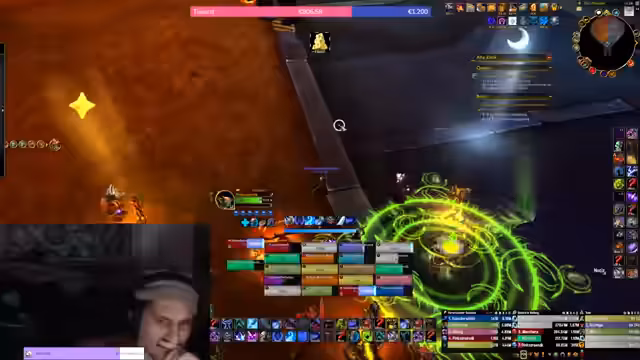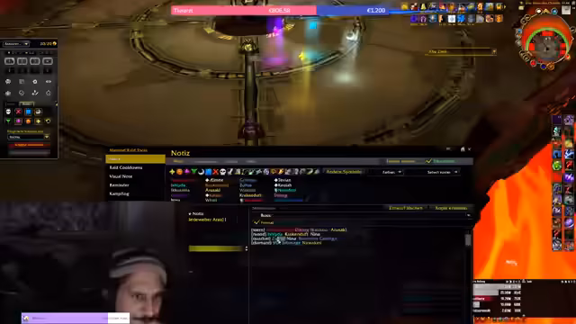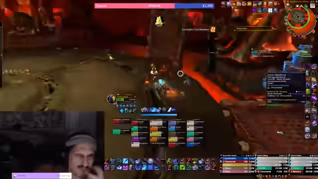 01:34:56Der vierte Soak, auch als Overlap bekannt, wird als der entscheidende Moment im Kampf gegen Gallywix beschrieben. Dieser Overlap ist der schwierigste Teil des Bosskampfes, und wenn er gemeistert wird, ist der Boss so gut wie tot. Die Positionierung des Bosses und der Spieler ist hierbei kritisch. Der aktive Tank zieht den Boss an eine markierte Position, während Spieler mit Blazes (Raketen) sich um den Boss verteilen und Spieler ohne Blazes sich vor dem Boss Richtung Abgrund positionieren. Dies ist notwendig, um den Strahl des Bosses in eine bestimmte Richtung zu lenken und gleichzeitig die Kanister zu soaken. Die Kanister müssen kurz ignoriert werden, um ein Wegstoßen oder falsches Baiten des Strahls zu vermeiden. Spieler mit Immunities können in die Kanister gehen, um den Schaden zu minimieren. Die Kommunikation und das Verständnis dieser Mechanik sind entscheidend, da zwei Mechaniken gleichzeitig oder kurz nacheinander auftreten. Der Streamer betont, dass dieser Overlap der schwierigste Teil des gesamten Spiels ist und dass das Team dank des Gears und der Season 3 Boni gute Chancen hat, ihn zu meistern. Ein Giveaway für ein Pet läuft noch parallel zum Raid, dessen Auslosung nach dem Bosskill stattfindet.