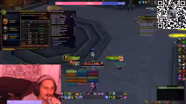 05:42:05Für die Heiler wird eine spezifische Strategie entwickelt. Die primäre Aufgabe ist ein sehr intensives Healing am Anfang des Bossfights. Später ist die Entzauberung der durchs Portal kommenden Spieler entscheidend. Die Streamerin teilt den Raid in eine 'lila' und eine 'orange' Gruppe auf, um die Angriffe zu organisieren, und lobt die Heiler für ihre bisherige Leistung.