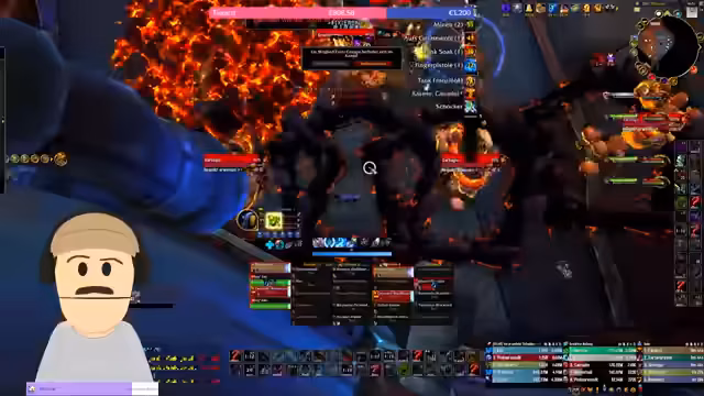 03:14:11Der Stream konzentriert sich auf den sogenannten Overlap, die schwierigste Phase des Kampfes. Hierbei greifen die Blazes, der Beam und der Sog ineinander. Spieler mit Blazes müssen sich hinter dem Boss positionieren, während alle anderen vor dem Boss stehen, um den Beam zu ködern. Anschließend müssen alle in Richtung Kanister rennen, um den Sog zu absorbieren. Mehrfach führt ein unkoordiniertes Verhalten, insbesondere das Fehlen von Soaks oder falsches Positionieren, zu W und führt zu langen Diskussionen und Korrekturen im Raid.