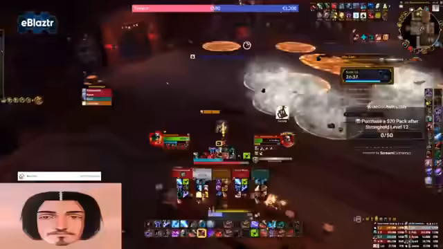 01:36:27Der Streamer startet eine Gruppe für den 'Plaguefall'-Dungeon auf 13. Es werden Probleme mit der Aggro-Haltung des Tanks und der Koordination im Chat deutlich. Besonders der zweite Boss mit seinen 'Bienen'-Mechaniken bereitet Schwierigkeiten. Nach mehreren Todesfällen und Fehlern bei den Pulls wird der Dungeon-Zeitplan kritisch hinterfragt, da der Schlüssel droht abzulaufen. Der Streamer versucht, eine optimale Route für den Pull zu finden.