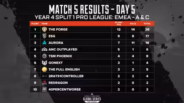 Der fünfte Spieltag der ALGS Year 4 Pro League in der EMEA-Region liefert intense Duelle und wichtige Erkenntnisse für die Playoff-Qualifikation. CyberCats zeigt beeindruckende Leistungen, während Teams wie Aurora und ESG konstant starke Ergebnisse liefern. Ein besonderes Highlight ist der überraschende Sieg von Forge, die mit taktischem Geschlag und strategischer Geduld wichtige Punkte sammelt. Die Gesamtwertung bleibt äußerst knapp, mit nur minimalen Punktabständen an der Spitze.