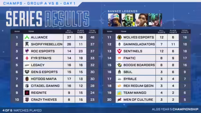 Am ersten Tag des ALGS Year 5 Championships startet die Gruppenphase des Apex Legends Turniers. Die 40 qualifizierten Teams sind in vier Gruppen eingeteilt und bestreiten eine Reihe von Matches. Jedes Team sammelt Punkte durch Einzelleistungen und Teamergebnisse. Die Besten jeder Gruppe qualifizieren sich direkt für die nächsten Runden. Die Gruppenphase dient als wichtige Vorauswahl für die weiteren Turnieretappen, bei denen die Weltspitze von Apex Legends um den Championship-Titel kämpft.