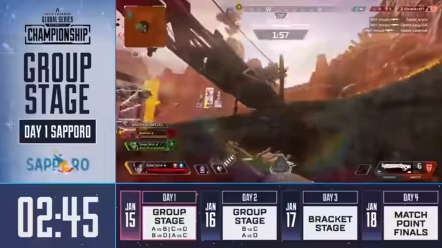 04:15:10Nach einer kurzen Pause kündigte der Stream die bevorstehenden Spiele an. Auf dem Hauptstage standen die Matches der Gruppen B und D an, während auf der B-Stage die Gruppen A und C gegeneinander antreten würden. Es wurde explizit erwähnt, dass das anstehende Duell zwischen Team A und C auf der B-Stage zu sehen sein wird. Die Kommentatoren kündigten an, die Sendung für den Moment zu beenden und versicherten, dass nach der Werbung weitere Aktionen des ALGS Year 5 Championship folgen würden.