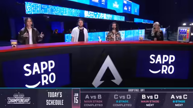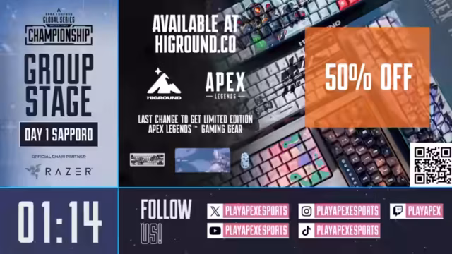 05:03:01Die Übertragung des ALGS Year 5 Championships wird offiziell als live aus Sapporo, Japan, angekündigt. Es wird betont, dass der Wettbewerb im Gruppenstadium des ersten Tages im Gange ist und die Teams sich an das internationale LAN-Event gewöhnen, während die Zuschauer die Spannung live erleben können.