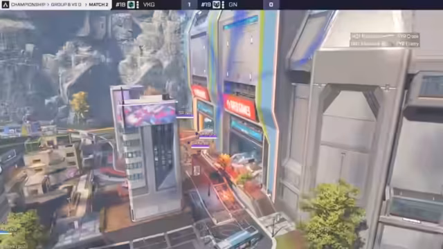 05:34:51Die Zone bewegt sich nach Süden, was die Teams um die Positionierung von City Hall zwingt. Oblivion etabliert sich auf Hochplätzen mit einer Charge Rifle und hält Druck auf untere Ebenen aufrecht. Unterdessen sichert sich Hotdog Mafia einen Mythischen Bin, der ihnen aufgerüstete Rüstungen und Waffen kostenlos liefert, was ihre Kampfkraft erheblich steigert. Dies wird zum entscheidenden Moment, da sie in der Lage sind, mit dieser erneuerten Ausrüstung Schlüsselgefechte zu gewinnen und ihre Position zu behaupten, während andere Teams wie VK Gaming gezwungen sind, sich zurückzuziehen und nach alternativen Zonen zu suchen.