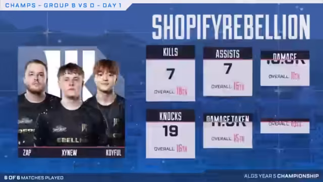 Kills, Respawn-Versuche und Dominanz von Shopify Rebellion