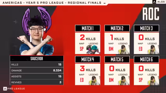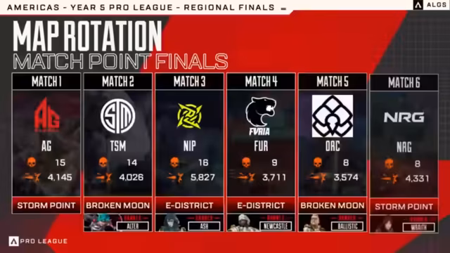 Ein spannendes Finale der ALGS Year 5 Split 1 Americas Regional Finals wurde von Team Rock dominiert. Mit einer souveränen Leistung im letzten Match sicherten sich Deeds, Saucerer und Vaxlon den Titel und damit den Startplatz bei den Mid-Season Playoffs. Der Sieg war das Resultat starker strategischer Cleverness. Neben Rock qualifizierten sich weitere Teams, darunter Orchid knapp und Sentinels durch die Gesamtpunktzahl. Falcons gewannen den Tiebreaker.