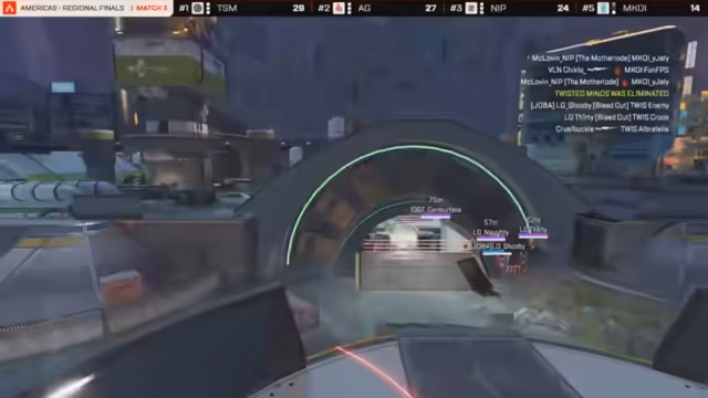 03:03:51Während Orchid seinen Lauf fortsetzt, erreicht auch 100 Thieves den Match Point. Das Team holt durch gezielte Eliminierungen und die Nutzung eines Re-Spawn Beacons wichtige Punkte, sichert sich seinen Platz in den Playoffs und macht das Turnier weiter offen. Mit nun drei Teams auf Match Point – Orchid, 100 Thieves und NIP – ist die Spannung am Höhepunkt, da weitere Spiele notwendig werden könnten.