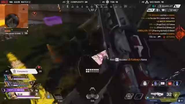01:12:33Das Spiel verlief für viele Teams in den finalen Ringen sehr chaotisch, da sich Teams aus ihren Gebäudestellungen lösen mussten. Complexity bewies trotz der Niederlage gegen SKD starke Kampfkraft, indem sie ihr Duell gegen LG gewannen und dabei wertvolle Kill-Punkte (KP) sammelten. Diese Konsistenz im Erzielen von Kills, auch ohne den Sieg zu erringen, ist ein wesentlicher Faktor in der Pro League, um an der Spitze der Rangliste zu bleiben und Punkte zu sammeln. Das Team zeigte damit, dass es auch unter Druck erfolgreich agieren kann.