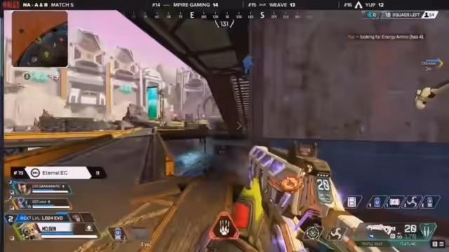 02:20:15In Nordamerika trennen nur 11 Punkte den ersten vom elften Platz, was das Rennen offen hält. Complexity bewegt sich nach Norden, möglicherweise auf der Suche nach einem Hinterhalt. TSM eliminiert ein Team mit Dark Veil, wird aber selbst von einem Charge Rifle getroffen. Die Zone wird in Richtung Checkpoint verschoben, was zu schwierigen Situationen führt. SSG hat aufgrund ihrer durchschnittlichen POIs einen schwierigen Tag. TSM wird nach einem guten vierten Spiel eliminiert. Nicht Moist nutzt einen Wrapp, um die Karte zu erkunden und eine günstige Position zu finden. Sie kontrollieren eine PoE mit Catalyst zur Türverteidigung, werden aber von SKD beobachtet. Most Hated hat bisher einen fantastischen Tag und hält mit den anderen großen Teams mit.