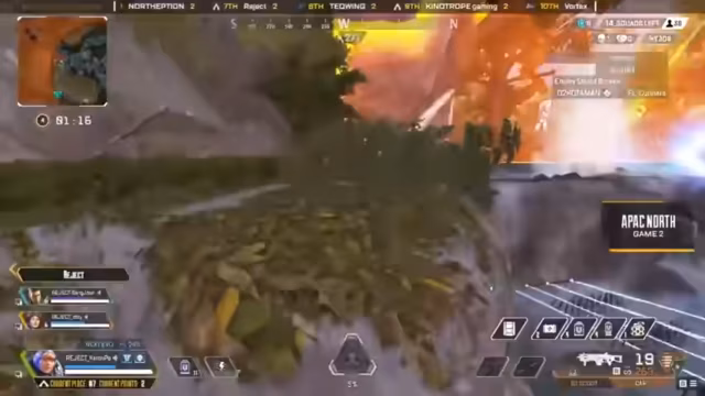 02:18:18Oxygen führt die Gesamtwertung mit 43 Punkten an, während sie versuchen, ihre Position auf World's Edge auszubauen. Dark Zero ist das einzige Team, das in der nächsten Kreisperipherie ist, während Optic unter Druck gerät. Native Gaming wird ausgeschieden, und Snipedown kämpft gegen mehrere Teams, während die Zone die Teams zwingt, zu kämpfen. Im weiteren Verlauf werden Komplexity und Havoc eliminiert, während LG in das Kampfgeschehen eingreift.