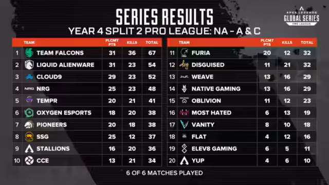 Der Fünfte Spieltag der ALGS Pro League NA in der zweiten Turnierhälfte stand im Zeichen von Team Falcons. Zunächst zeigten Teams wie NotMoist und Elevate durch Roster-Wechsel starke Leistungen. Falcons lag nach einem schwachen Start des Tages jedoch überraschend weit zurück. Mit einem dominanten Sieg im letzten Spiel auf Stormpoint konnte das Team jedoch eine dramatische Wendung vollziehen und sich den Sieg des Match Days sichern.