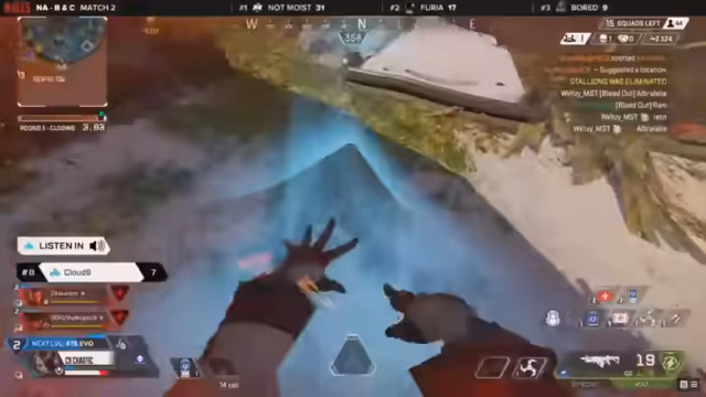 02:12:18In den mittleren Phasen des Spiels zeigen sich komplexe Teamdynamiken. TSM hält sich im Norden, während Furia im Süden auf zwei reduziert ist, aber versucht, wieder ein vollständiges Team zu werden. Complexity verliert Mitglieder bei der Rotation, aber Furia wehrt einen Angriff ab und kann sich wieder auf zwei Spieler verstärken. TSM hat begrenzte Ressourcen, während EEC eine gefährliche Position auf dem Sniper Tower gegen Liquid Alienware einnimmt. TSM umgeht den Norden und könnte eine vorteilhafte Position einnehmen, wenn sie Bleed besiegen, aber Bleed nutzt Deckung, um sich vor anderen Teams zu schützen. Mehrere Teams fallen aus, während LG nach einem Weg sucht, das Spiel zu gewinnen, insbesondere in Skyhook, wo die Zone sie begünstigt. Temper von Stay Naughty fügt Schaden zu und erhält einen Level-3-Perk. LG, die zuvor in Stormpoint schlecht abschnitten, nutzen ihre günstige Position in World's Edge und stehen nun Cloud9 in einem 3-gegen-3 gegenüber, wobei sie versuchen, einen Zangenangriff zu starten. LG dominiert Cloud9 dank guter Positionierung und Scans und sichert sich einen wichtigen Sieg.
