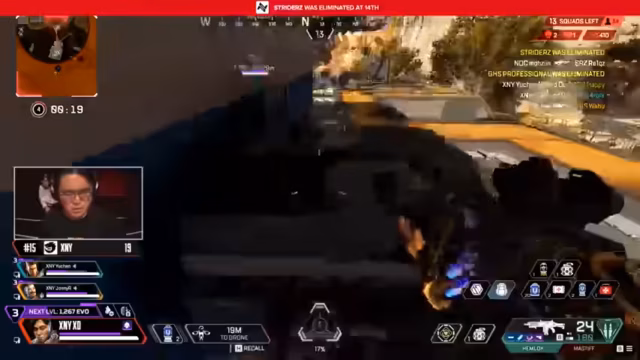 02:12:03Free Agent Kids rotieren und versuchen, sich in den Top 10 zu platzieren. 504 wird gesichtet. FA Kids sichert sich einen Respawn und kämpft gegen GHS. Striders greift von Downbeast aus ein und hält FA Kids am Leben. Liquid Alienware wird außerhalb von North Mill gesichtet. SSE X-Ray, die von Mill kommen, sichern sich Kills. X und Y führen einen Duo-Reset auf der Brücke durch. FA Kids nutzt die Situation aus, als X und Y die Brücke überqueren. Epic wirft Granaten, aber ohne Erfolg. FaZe wird von Noxy überrascht und verliert Mitglieder. Luminosity Gaming räumt die südliche Seite und bereitet sich auf das Endgame vor. Guild wird von Reject Winity eliminiert, die wiederum von Go Next ausgeschaltet werden. Noctum sichert sich neun Kills. GoNex plant ihren nächsten Zug und kommuniziert über ihre Strategie. LG kontrolliert die Wall und eliminiert GoNex. Noctum zeigt eine beeindruckende Leistung mit 11 Kills. LG gewinnt das Spiel dank einer besseren Einschätzung der Situation als GoNext.