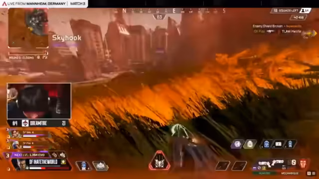 10:18:36Teams kämpfen um die besten Positionen in der Zone, wobei Shadow 3690 Makers' Platz einnimmt. Es wird diskutiert, wie lange Shadow diese Position halten kann, da sie keine defensiven Charaktere haben. Complexity greift Icholos an, obwohl diese in Scrims oft unterschätzt werden. Icholos konzentriert sich auf das Macro-Spiel und ihre Positionierung verbessert sich dadurch erheblich. ExoClan steht vor der Entscheidung, ob sie gegen Navi kämpfen oder einen Evac Tower nutzen sollen. Sie entscheiden sich für den Kampf, da sie die Situation in einem Gebäude besser einschätzen können. Füda von ExoClan hat eine Kraber und versucht, Navi ins Visier zu nehmen. ExoClan muss sich jedoch auch auf Teams konzentrieren, die sich hinter ihnen positionieren. Alliance nähert sich einem Kampf zwischen Hau und Icholos, während Luminosity ebenfalls involviert sein könnte. Hau wird schnell ausgeschaltet, kann sich aber möglicherweise wieder erholen. ExoClan verteidigt sich erfolgreich gegen Navi in einem Gebäude, während Alliance einen Evac Tower nutzt. L.G. stellt eine große Bedrohung für ExoClan dar, insbesondere in Bezug auf die Höhe in Barometer für Liquid Alienware.