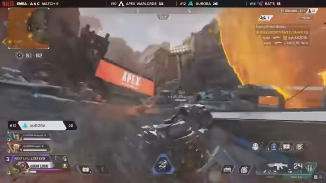 01:18:19Apex Warlords setzen sich in Match 2 auf Storm Point durch und sichern sich einen wichtigen Sieg mit über 10 Kills. Diese Leistung ist ein starker Hinweis auf ihr Potenzial, besonders da sie unter Druck zeigen. Der Sieg bringt ihnen wertvolle Punkte und stärkt ihre Chancen, die Regular Season erfolgreich abzuschließen und sich für die Regional Finals zu qualifizieren.