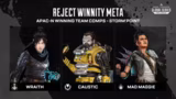 02:17:12Die Kommentatoren wenden sich den APAC-Regional Finals zu, bei denen Reject Winity mit einer ungewöhnlichen Wraith-Caustic-Mad Maggie-Kombo dominierte. Diese aggressive Kombination, mit einer Double-Zoning-Strategie, zeigte sich erfolgreich. Im Gegensatz dazu gewann Tom Young-Kung in APAC South mit der traditionelleren und nach wie vor sehr dominanten Bangalore-Bloodhound-Caustic-Kombination, die sich durch Rauchgranaten und Scans Vorteile sichert. Die APAC South Finals gingen bis ins zehnte Spiel und waren damit die längste Finalserie der Geschichte.