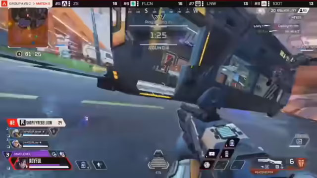 02:38:24Im mittleren Spiel des Apex Legends Pro League Matches wurden mehrere Teams in schwierige Situationen gebracht. ZZ wurde frühzeitig eliminiert, nachdem sie von Hot Dog Mafia in die Zange genommen wurden. Viele Teams verhielten sich respektvoll und vermieden unnötige Aggressionen, da die Platzierungen in der Serie sehr eng beieinander lagen. Mythic Bin nutzte seine Position in der Zone vorteilhaft aus. Oblivion und TSM waren die einzigen Teams, die sich in der Zone um die Lava befanden. Nice Guys wurden von TSM gescoutet und fielen auf den 18. Platz zurück, während Hotdog Mafia in der nächsten Zone ebenfalls nicht überleben konnte. Falcons sicherten sich eine gute Position auf den Gleisen, während Shopify Rebellion weiterhin dominant und aggressiv agierte. Koifalt von Shopify Rebellion zerstörte Bubbles mit dem Riot Drill Wrecking Ball. Gegen Ende des mittleren Spiels konzentrierten sich die Teams darauf, ihre Positionen zu sichern und unnötige Risiken zu vermeiden, da ein gutes Spiel ihnen eine Top-5-Platzierung ermöglichen konnte. ZZ wurde eliminiert, was zu etwas Respektlosigkeit gegenüber ihrer Deathbox führte.