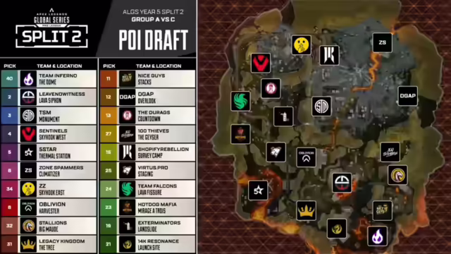 02:01:15Newcastle wird gebannt, was zu mehr Rampart- und Wraith-Picks führt. Einige Teams weichen jedoch von der Norm ab und wählen Ash, Sparrow, Fuse, Catalyst, Gibraltar, Crypto und Pathfinder. Newcastle ist mit 17 Bans die am häufigsten gebannte Legende, gefolgt von Rampart mit 16 und Wraith mit 14. Es wird erwartet, dass Gibraltar aufgrund der Notwendigkeit von Deckung in den finalen Zirkeln häufiger gewählt wird. Die Teams rotieren frühzeitig, um sich einen Vorteil zu verschaffen. Es wird erwartet, dass viele Teams versuchen werden, sich in die Zone zu zwingen, indem sie Deckung bauen und ihre Positionen halten. Die Kommentatoren äußern den Wunsch nach mehr als 11 Teams im finalen Zirkel, obwohl dies unwahrscheinlich ist. Die Teams planen ihre Rotationen um Harvester, Ringkonsolen und Survey Beacons. Stallions könnten einen Kampf provozieren, wenn sie sich durch ein Portal zwingen. Five Star bewegt sich näher an Hot Dog Mafia in Lava Fissure, was zu einem potenziellen Konflikt führt. Es wird erwartet, dass es im Mid- bis Late-Game viele Kämpfe geben wird, da es mehr Platz gibt. Wraith-Portale könnten eine wichtige Rolle spielen, um in den finalen Momenten zu überleben.
