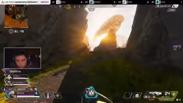 08:08:35Die Zone verschiebt sich westwärts, was für Teams, die sich östlich positioniert haben, ungünstig ist. Alliance und TSM befinden sich in starken Positionen im Nordwesten. Jukka von Fnatic findet einen Kraber, was ihnen einen Vorteil verschafft, da sie sich nicht in der Zone befinden. Dreamfire findet ebenfalls einen Kraber. Fnatic, die auf Matchpoint sind, haben es schwer, einen Platz zum Spielen zu finden. Falcons wird von VKG angegriffen, wobei Füder in Schwierigkeiten gerät. Zero von Falcons wird wiederbelebt, aber die Zone zieht weiter nach Norden. NoctumScan wird eliminiert, wodurch EnterForce36 eine erstklassige Position erhält. FURIA wird in Position 18 eliminiert. Nott Moist landet in einem Care Package, der eigentlich für Alliance gedacht war. VK Gaming wird von GG eliminiert, einem weiteren Matchpoint-Team. Not Moist wird ebenfalls eliminiert. Fnatic schaltet GG aus, wird aber dann von TSM überwältigt. TSM kontrolliert nun diese Seite der Karte. Alliance schaltet Team Liquid Alienware und Dreamfire aus und erreicht die Top 10.