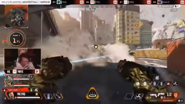 05:58:05Unlucky von Alliance nutzte Pathfinder, um das Banner zu holen und sich aus dem Staub zu machen, während Crypto das Banner zum Respawn-Beacon schickte. Alliance befand sich sicher in der nächsten Zone. Alliance beobachtete den Killfeed und sah, dass Gaming Gladiators eliminiert wurde, was den Druck verringerte. Alliance war nur noch 4 Punkte vom Matchpoint entfernt. TSM geriet unter Druck und wurde von Enter Force 36 (E36) und Liquid Alienware angegriffen. TSM musste bis zum nächsten Spiel warten. Fnatic war im Dome, während Bleed eSports sich auf der anderen Seite befand. Falcons wurden eliminiert, und Koifo sicherte sich den letzten Kill. Niemand sonst würde den Matchpoint überschreiten. Team Liquid kontrollierte eine Plattform, aber die Zone täuschte sie. Cloud9 verlor gegen Complexity. Complexity wurde ausgeschaltet. Makers brauchte eine Möglichkeit, sich der östlichen Seite zu nähern. Team Liquid wurde ausgeschaltet. Alliance überquerte die 50 Punkte und erreichte als zweites Team den Matchpoint. Mit dem Ausscheiden von Gaming Gladiators hatten sie eine Chance auf den Sieg. Fnatic sicherte sich einen Sieg und erreichte 42 Punkte. Nocturnal von Fnatic eliminierte Moist und verhinderte so eine Matchpoint-Chance. Alliance und Gaming Gladiators befanden sich nun beide auf Matchpoint.