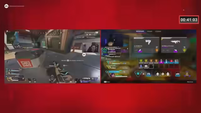 00:36:47Während die ersten Lobbys im Gange sind, werden die verschiedenen Spielstile und Charakterwahlen beobachtet. Zerathors Team setzt auf den starken Support-Legenden Conduit, der Schild für die Teamkameraden spendet. Im Gegensatz dazu fokussiert sich Gotaga auf aggressive Waffen wie die Flatline. Die Kommentatoren diskutieren die aktuelle META, bei der die Wingman, Havoc und Nemesis M-Lock als sehr stark eingeschätzt werden, während frühere Meta-Waffen wie Volt und Prowler an Bedeutung verloren haben.